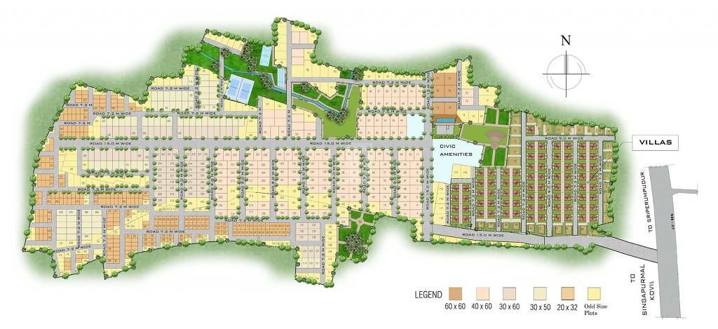 Near Vallakottai Murugan Temple 100% Vastu compliant layout design Underground Sewage, Power and Storm water Lines Avenue Plantation Natural Lake adjoining the property. Airport: Chennai International Airport 37 Kms Railway Station: ingapperumal Kovil Railway Station 19 Kms Hospital: Jaya Hospital 1 Kms City Center: Guindy 46 Kms School: PS Secondary School 1 Kms