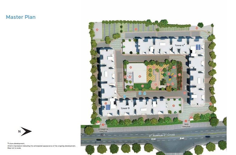 • A 20,000 sq. ft. central vehicle-free podium with abundant green spaces and amenities