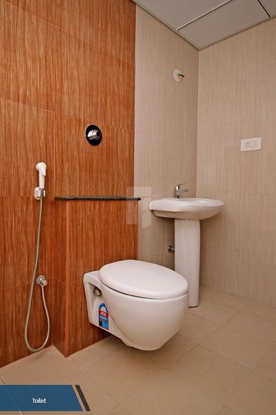 3.4.1 Toilets:Master bedroom toilet with glass partition in shower area. Good quality Vitreous ware/granite/marble counter-top wash basin with basin mixer(hot & cold water) and bottle trap along with premium branded Sanitary wareand CP fittings, wall mounted EWC, including seat cover,flush valve and health faucet.