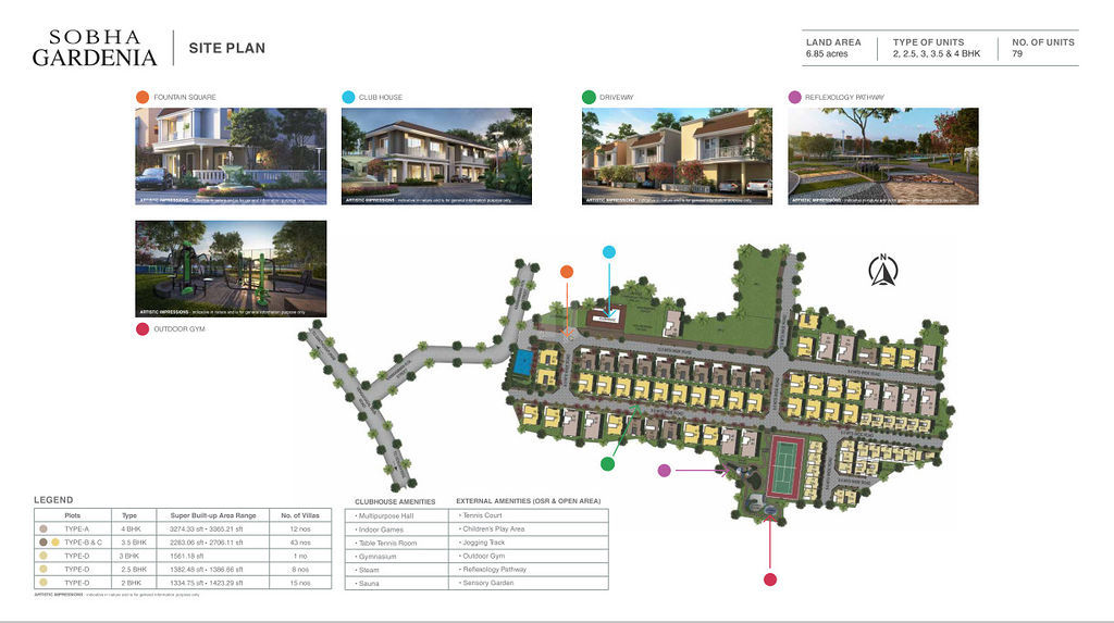 It comprises 79 lifestyle villas in a wide array of sizes encompassing 2, 2.5, 3.5 & 4 BHK residences spread over 6.85 acres.